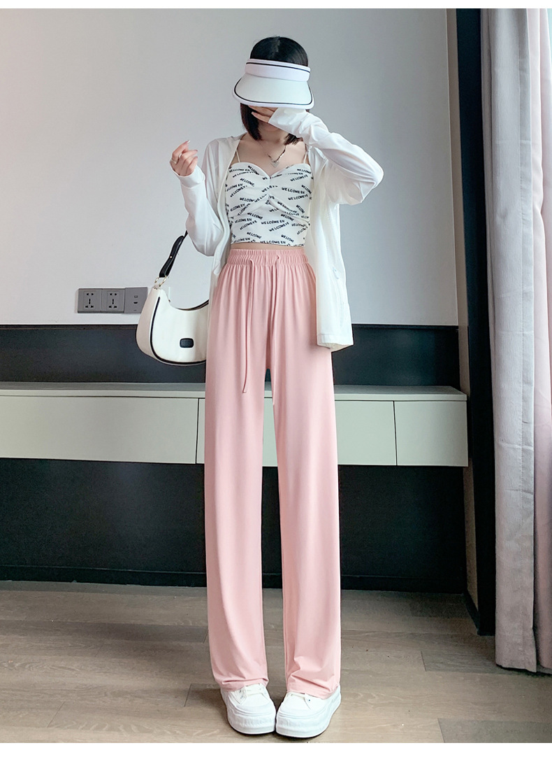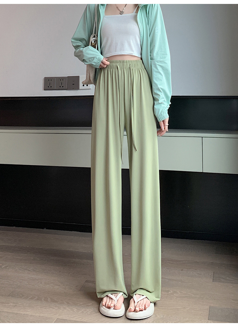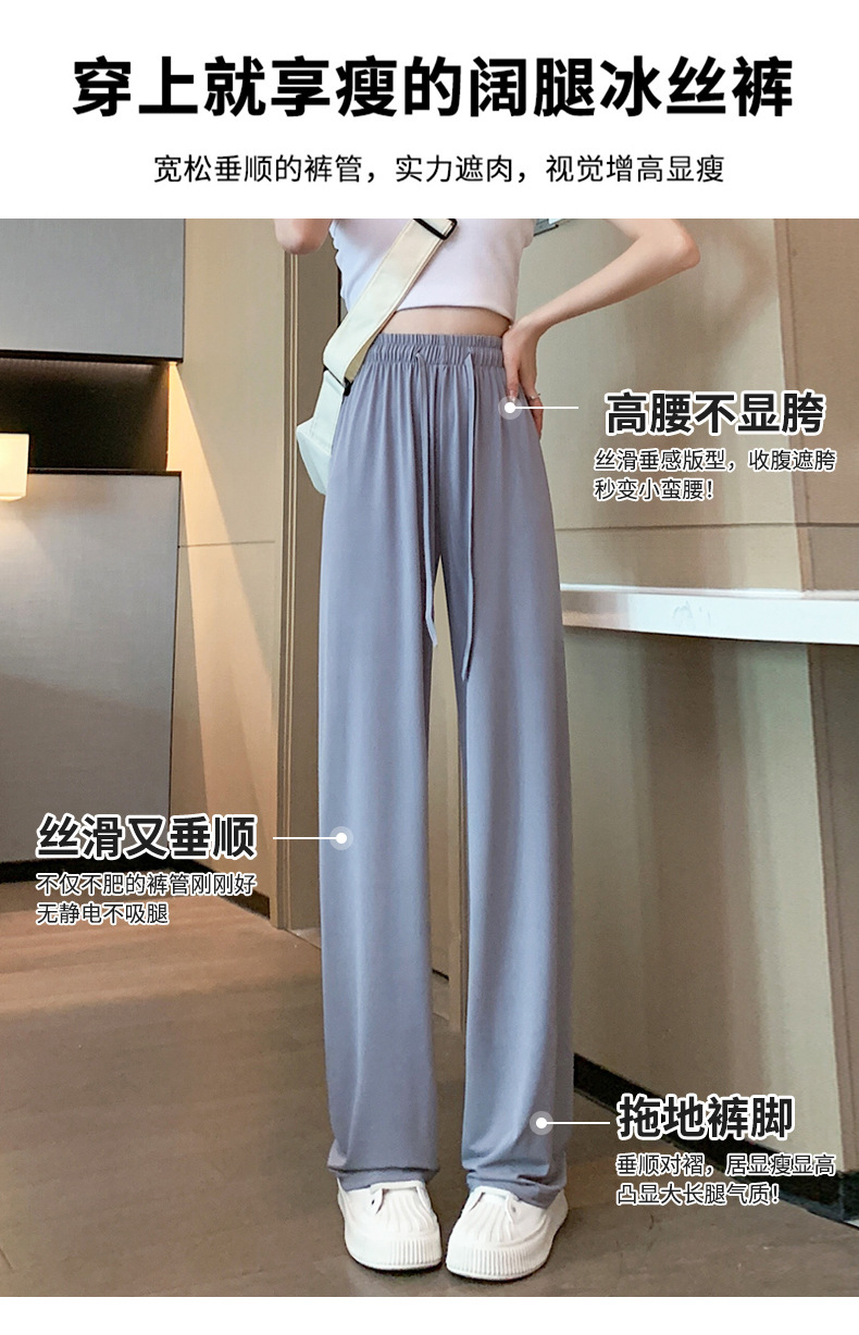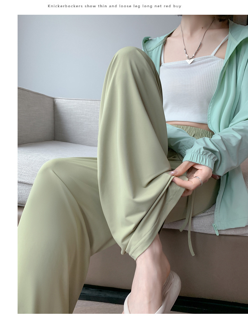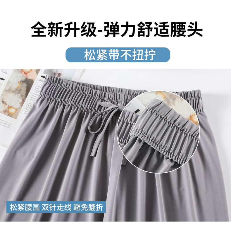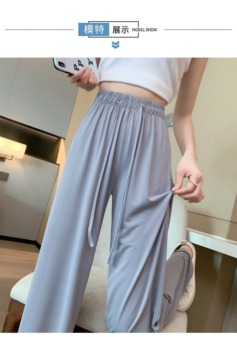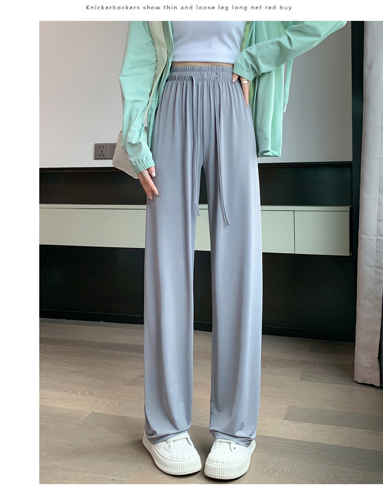 Grey Ice Silk Sports Pants Women's Thin Summer High Waist Loose Straight Leg Casual Wide Leg Pants Cool Cool Anti-Mosquito Sunscreen Pants