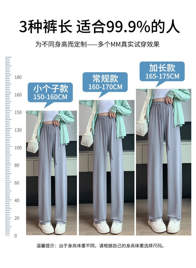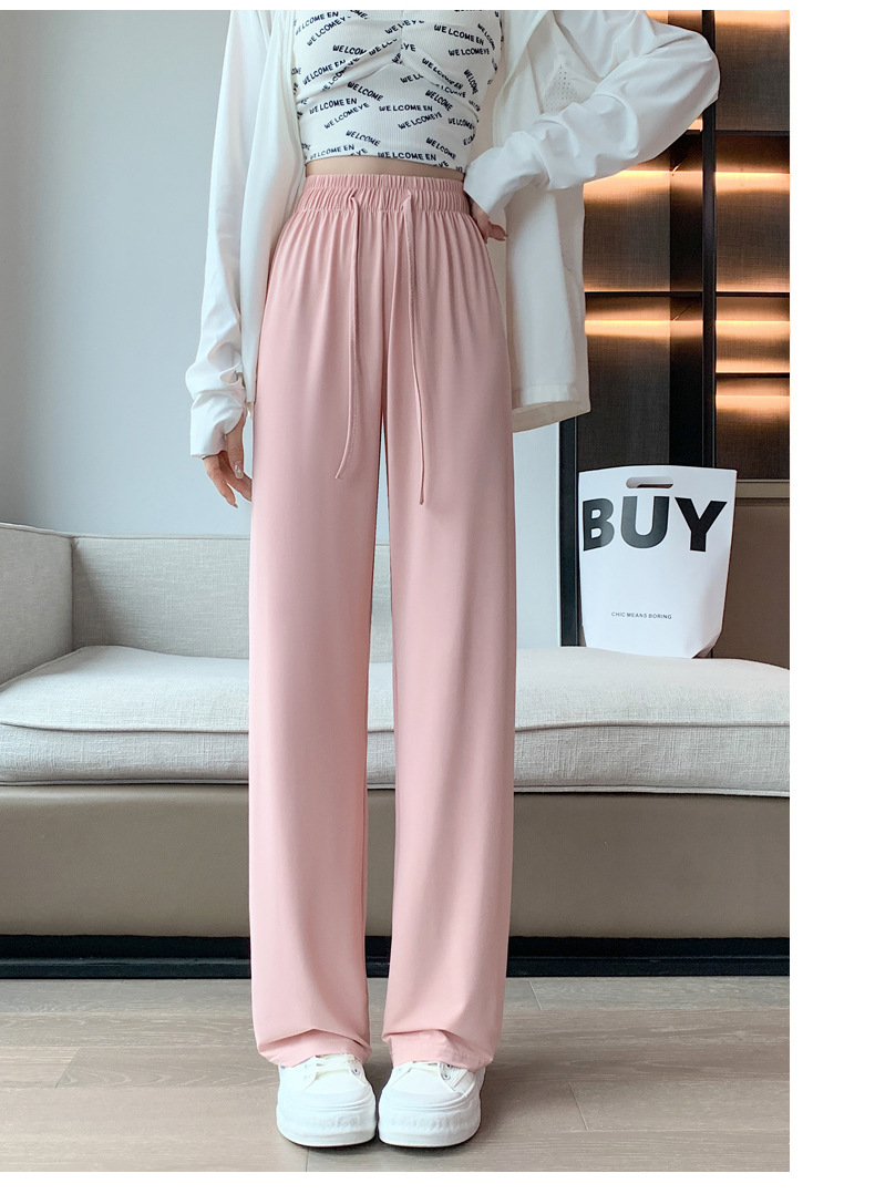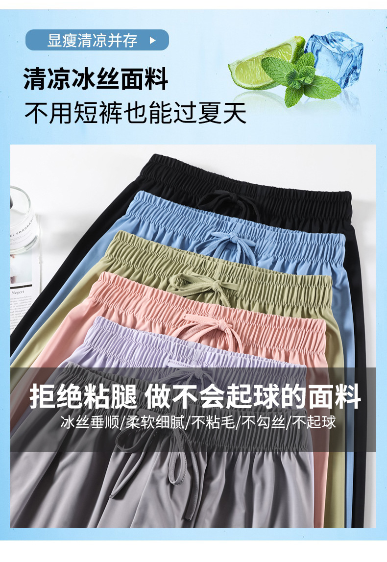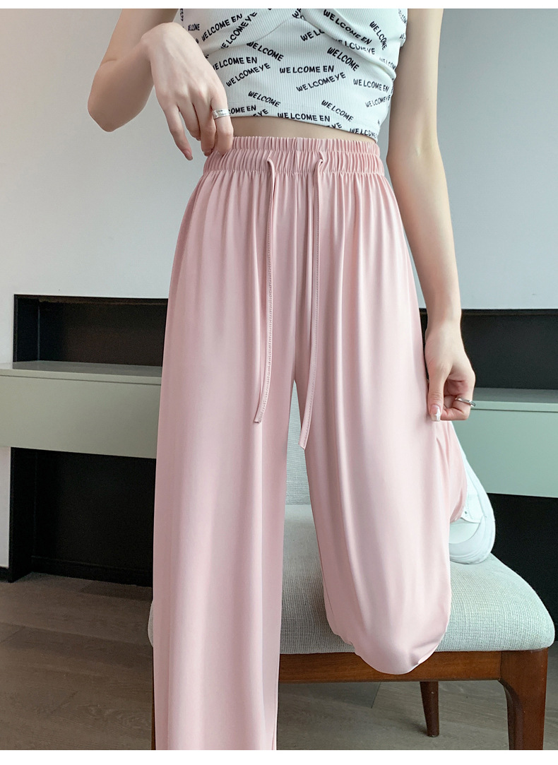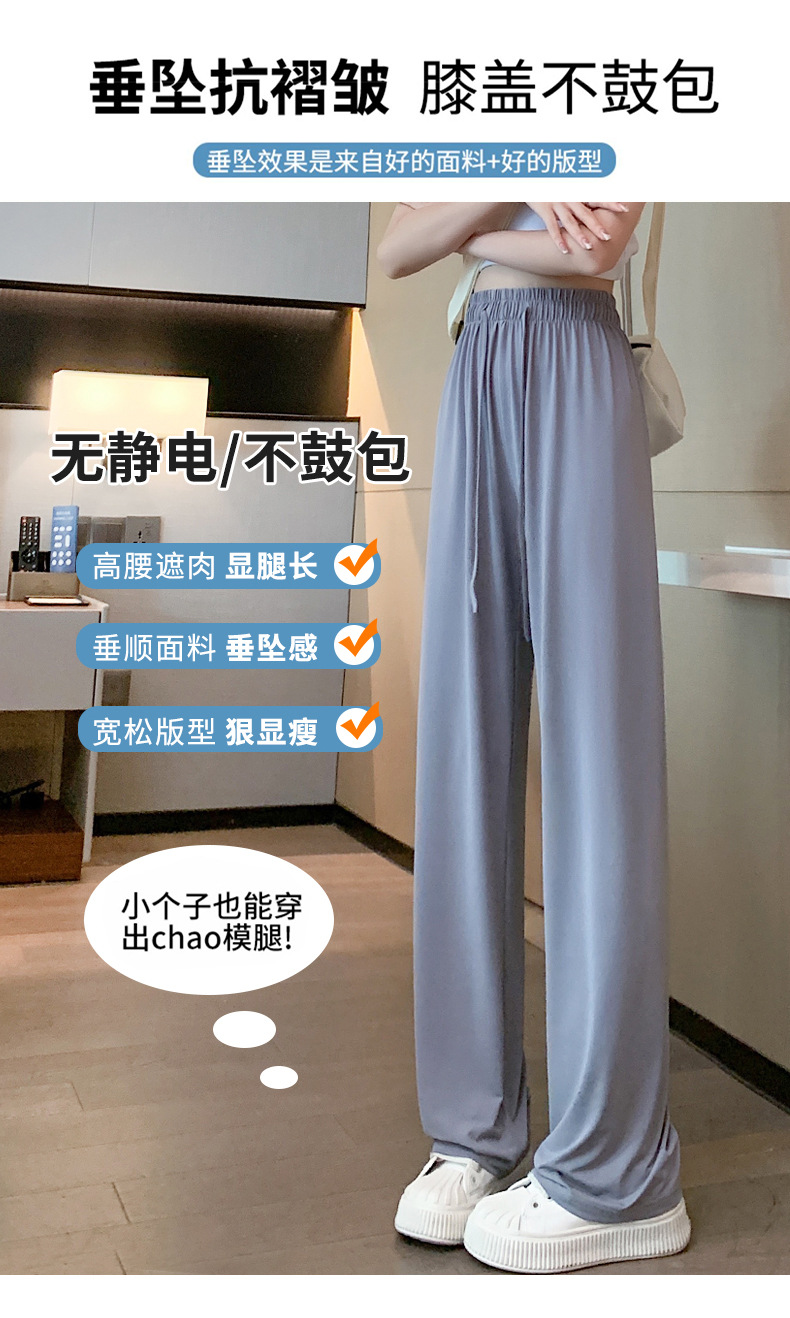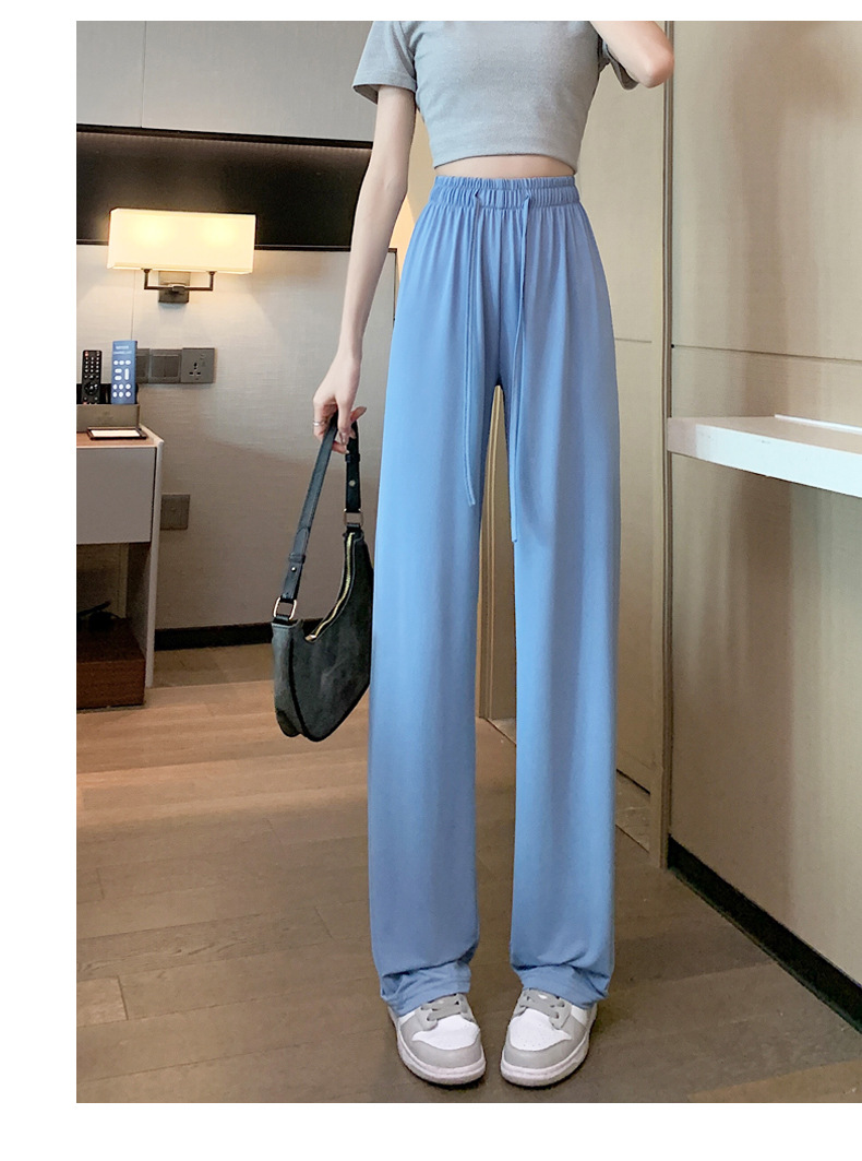 Grey Ice Silk Sports Pants Women's Thin Summer High Waist Loose Straight Leg Casual Wide Leg Pants Cool Cool Anti-Mosquito Sunscreen Pants