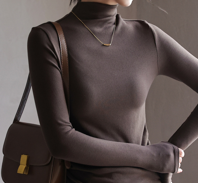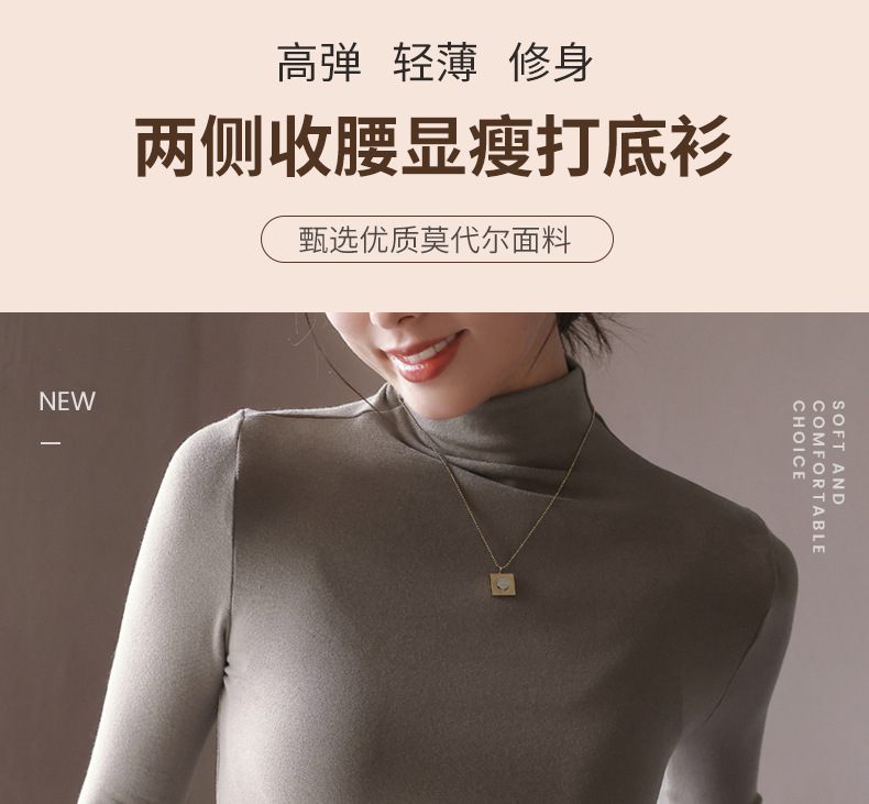 High Quality Thickened Modal Half High Neck Solid Color Base For Women In Autumn And Winter With Long Sleeve Top Base