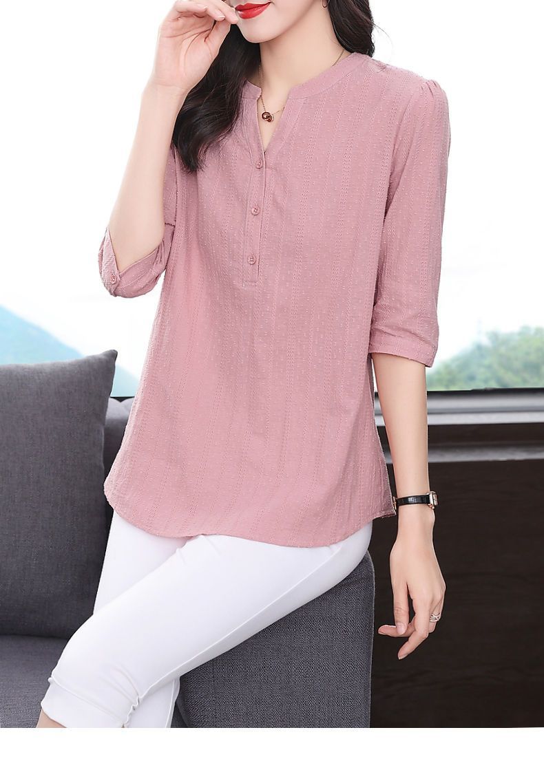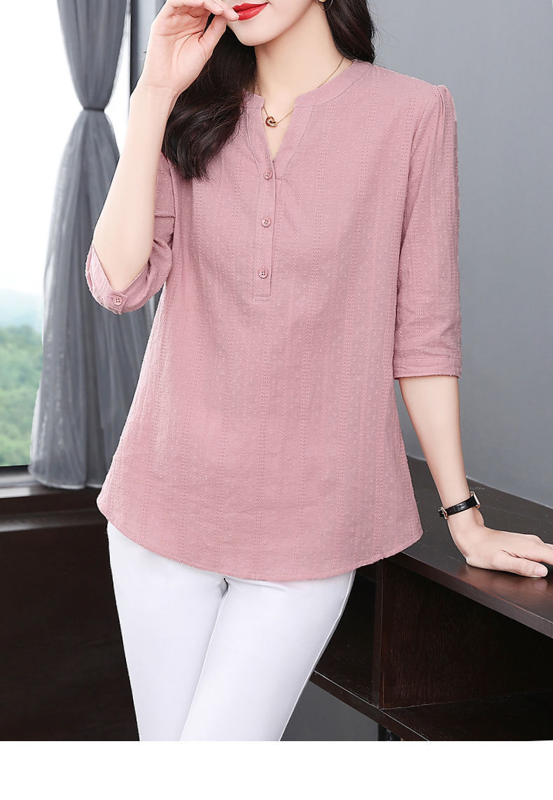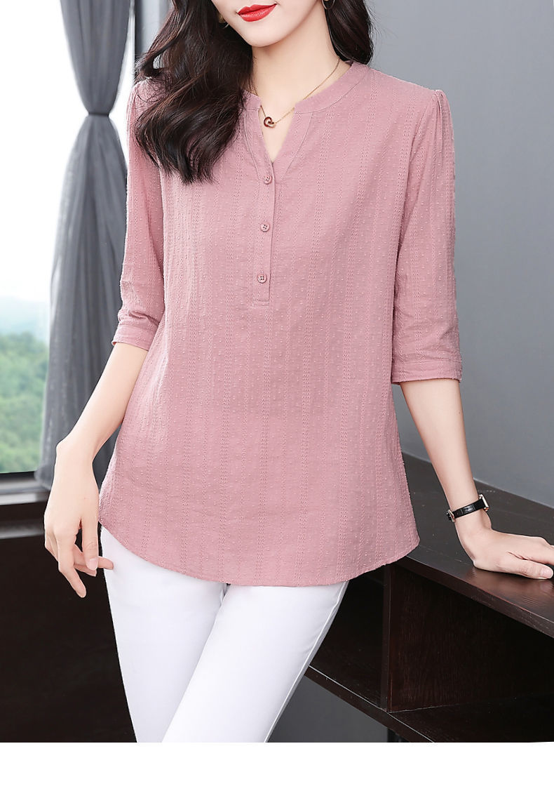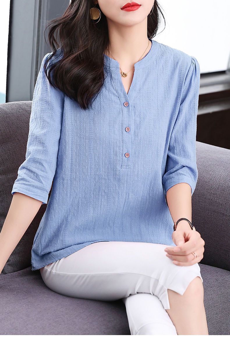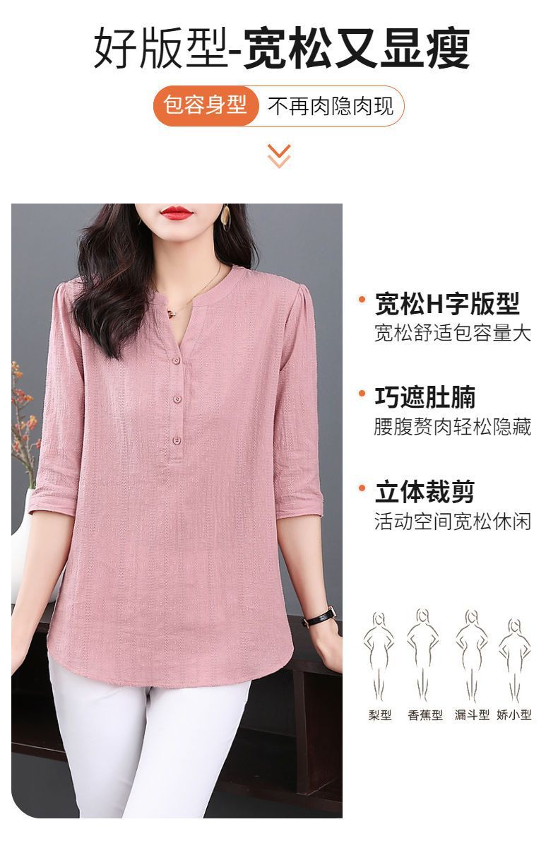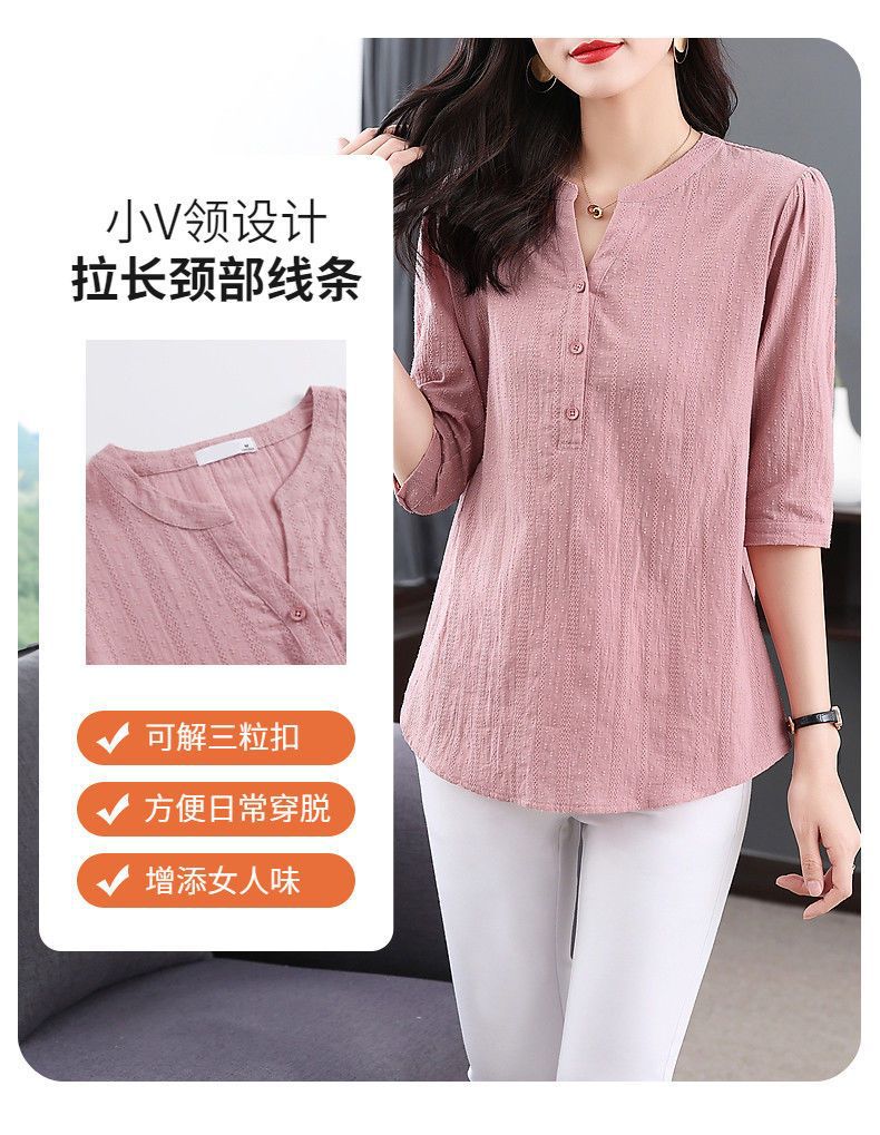Mid-Sleeve Shirt Women's Spring And Autumn New Style V-Neck Seven-Point Sleeve Top Large Size Thin Women Lining Clothes