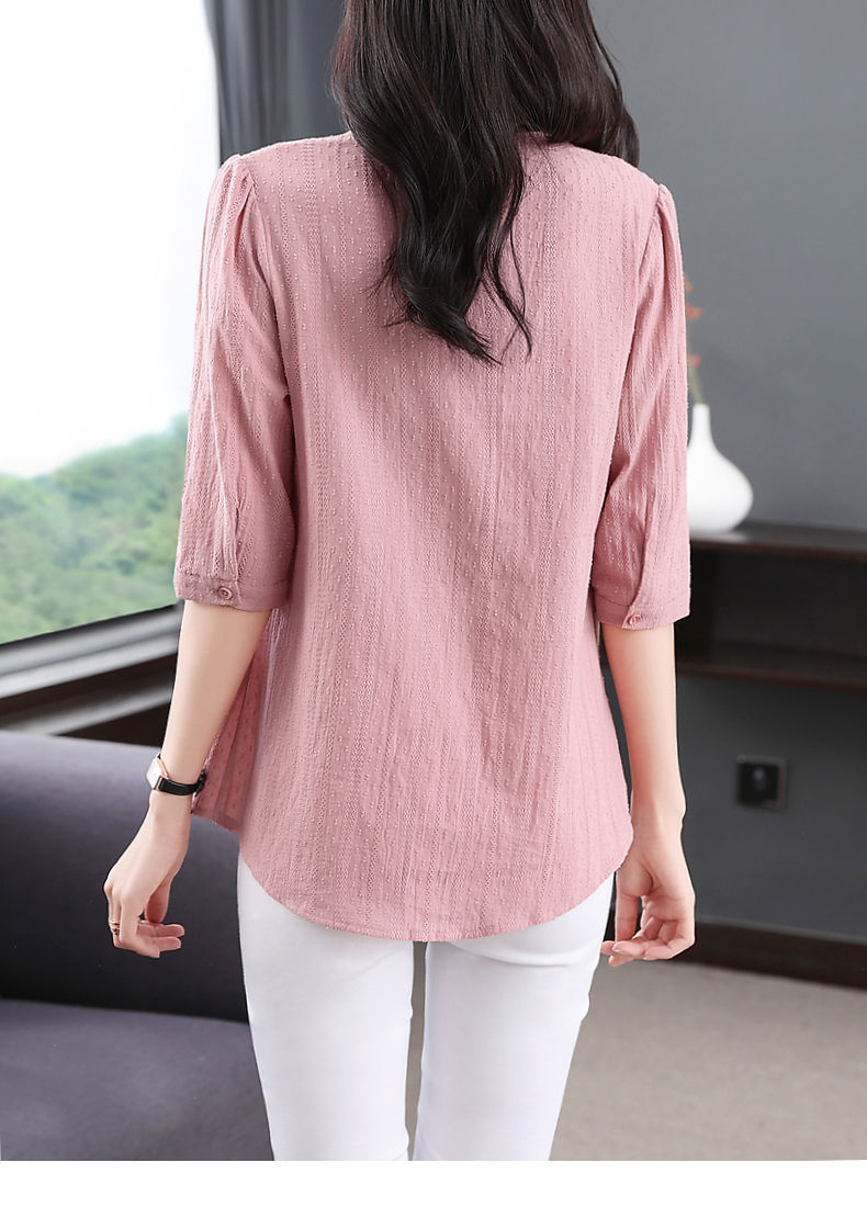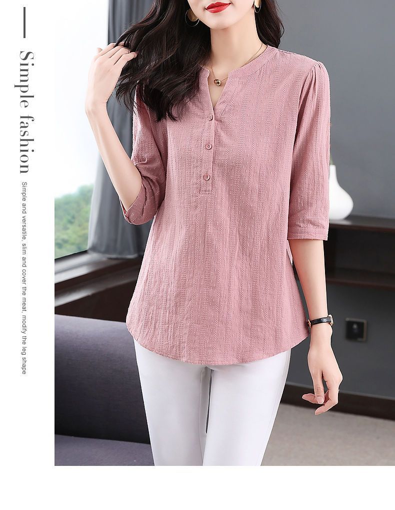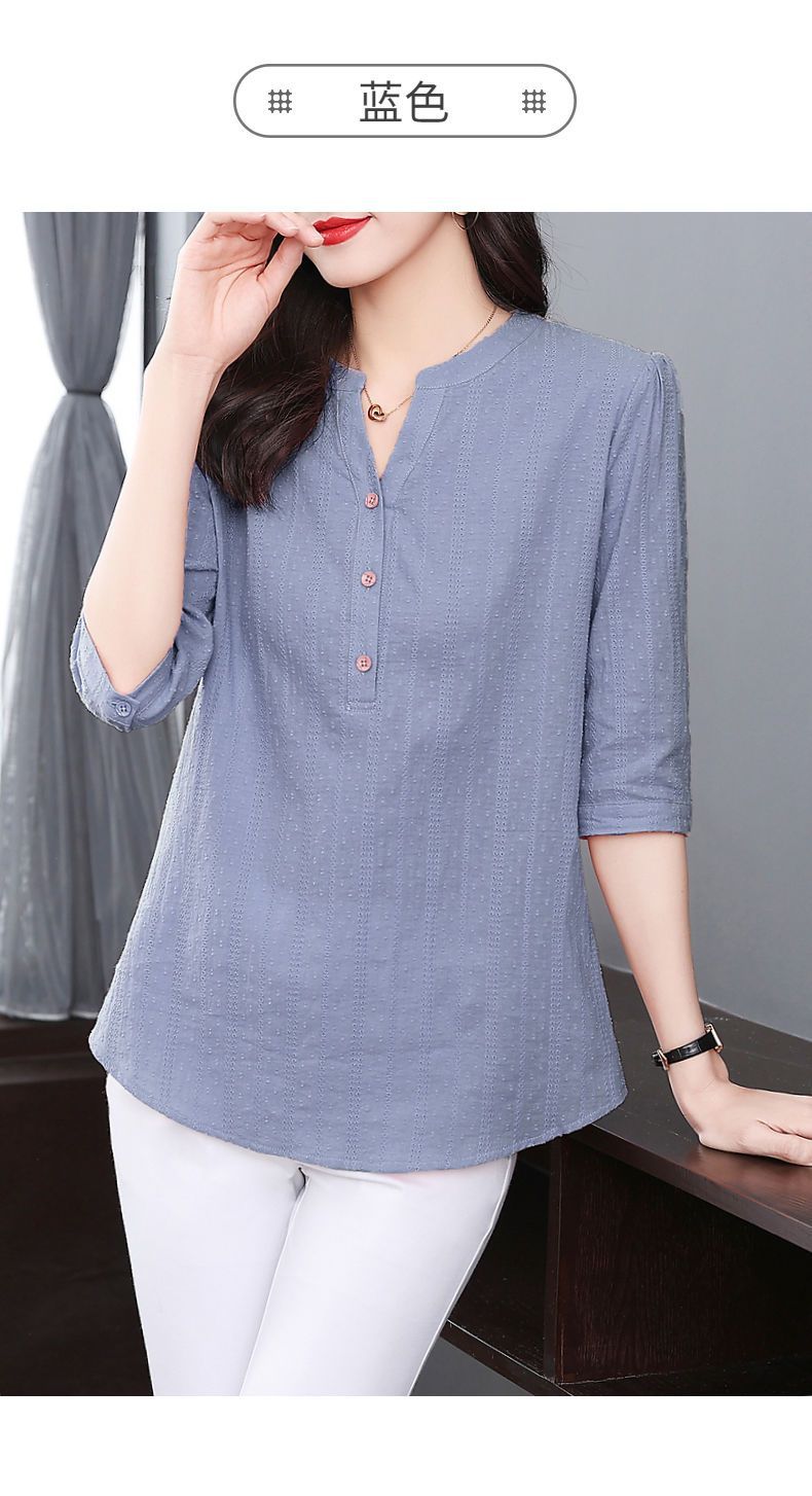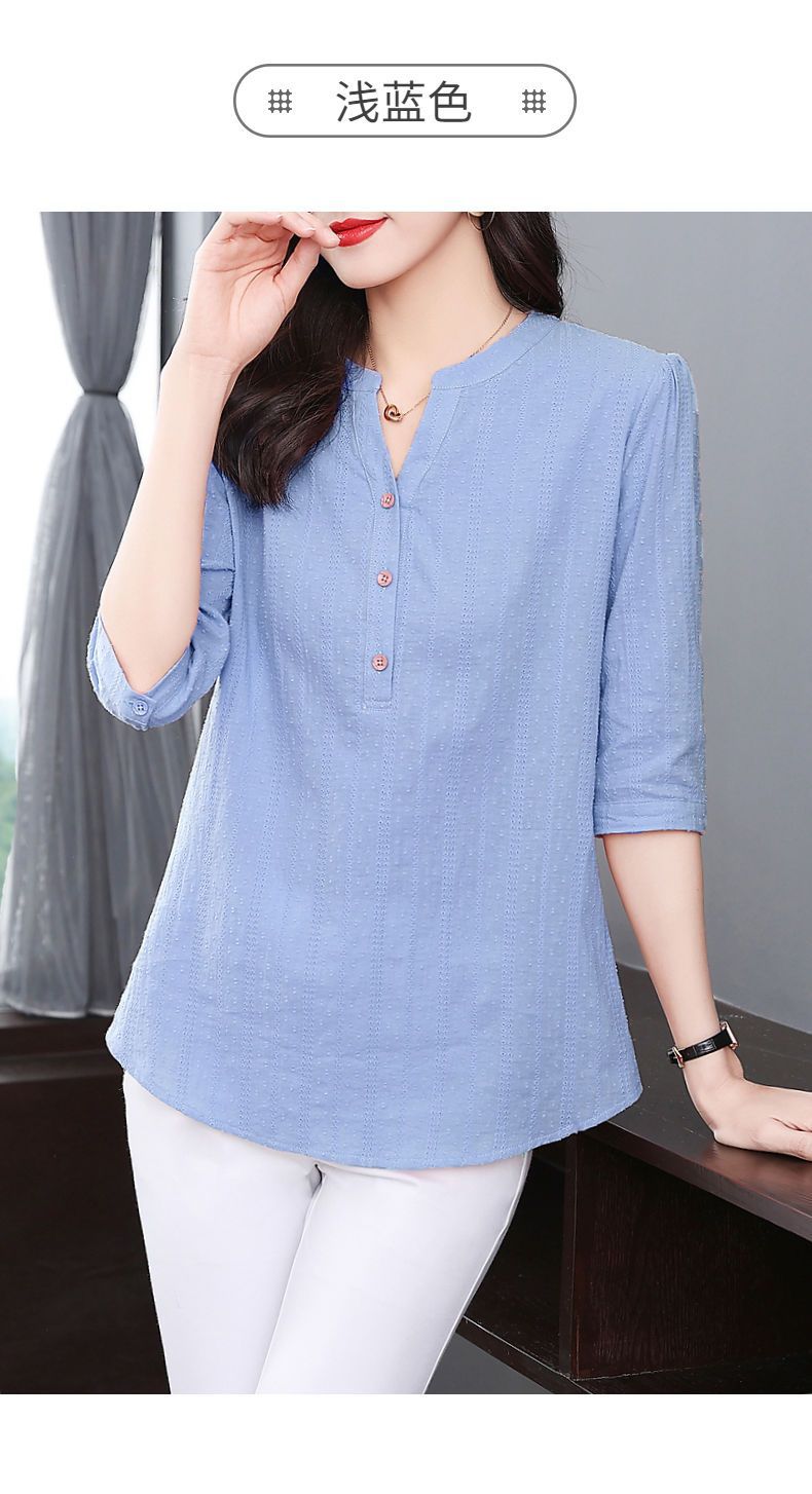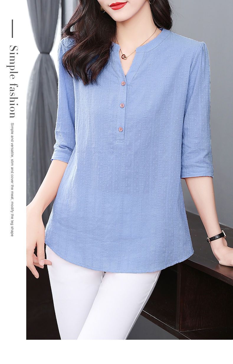 Mid-Sleeve Shirt Women's Spring And Autumn New Style V-Neck Seven-Point Sleeve Top Large Size Thin Women Lining Clothes