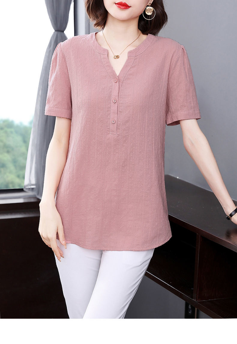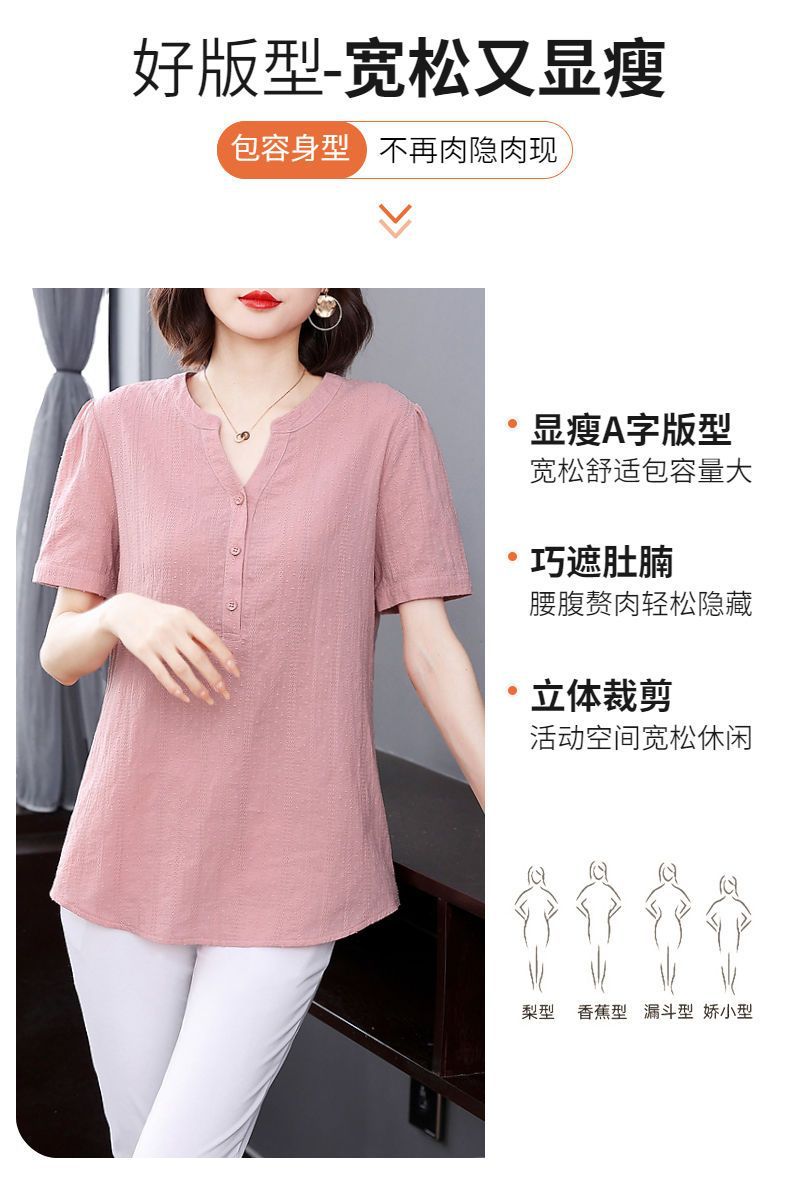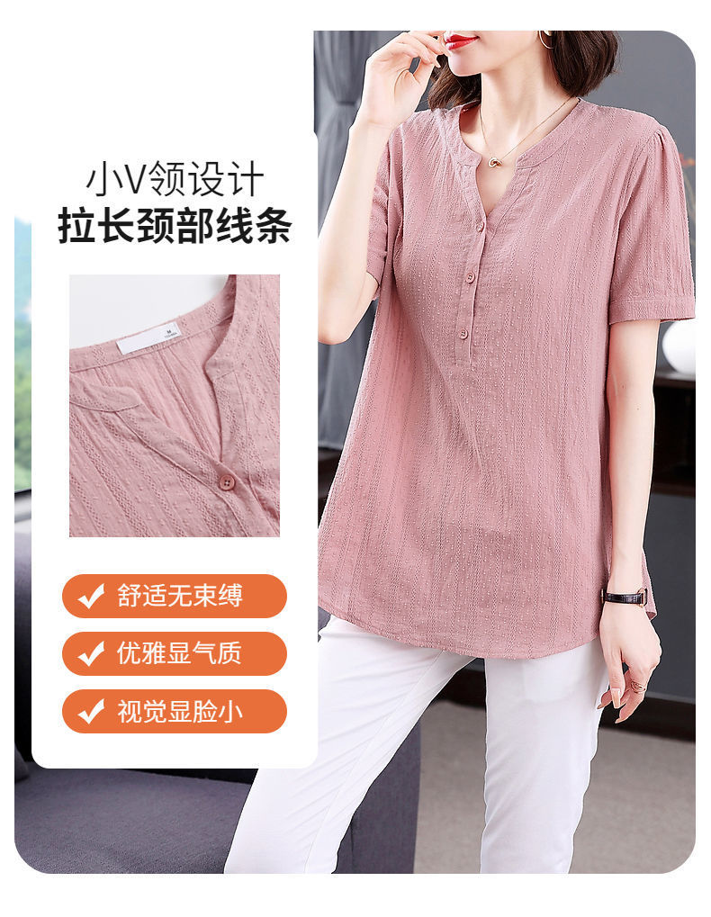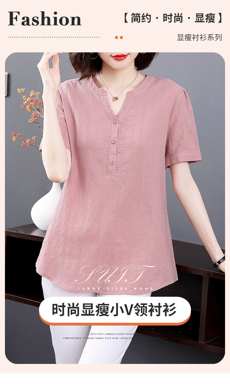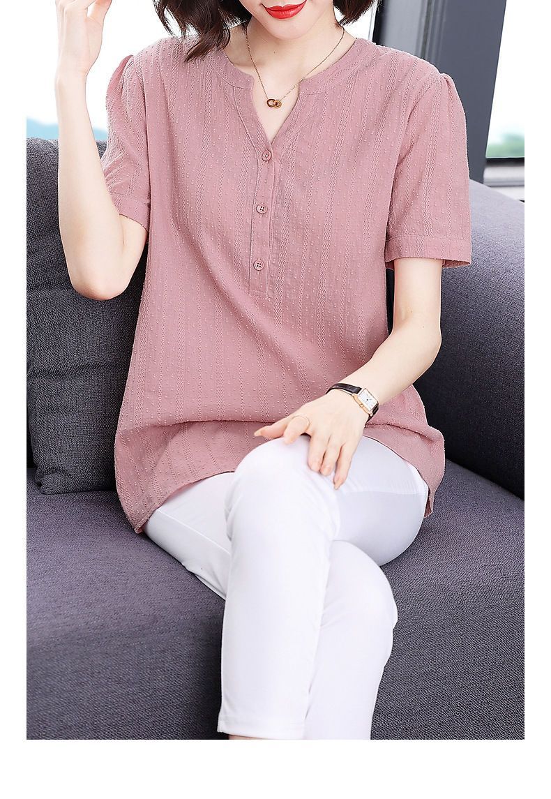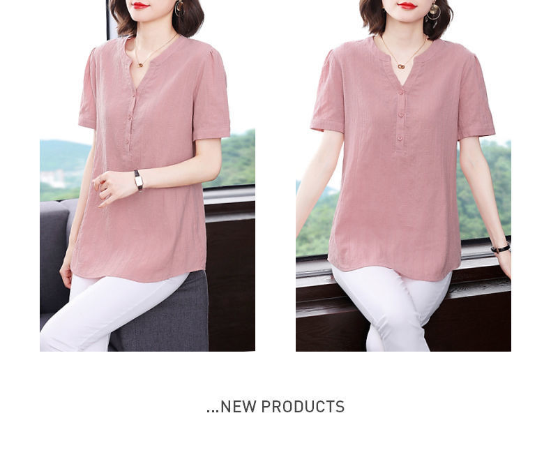 Mid-Sleeve Shirt Women's Spring And Autumn New Style V-Neck Seven-Point Sleeve Top Large Size Thin Women Lining Clothes
